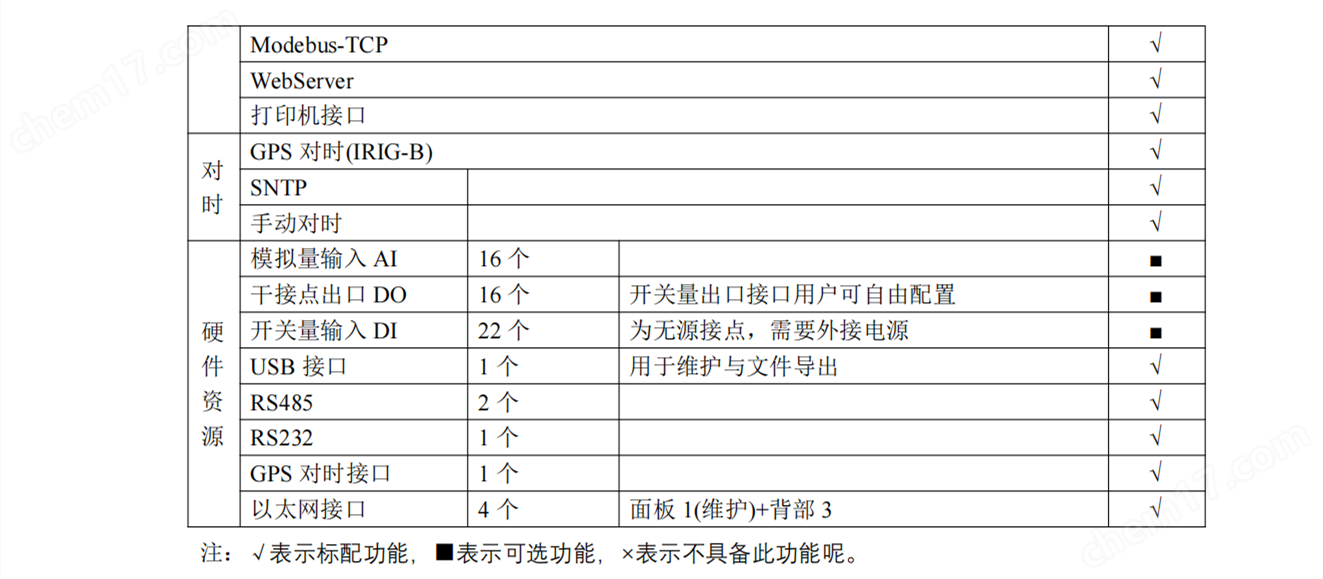 豐富的接口資源:16 路交流電壓/電流通道,可同時接入多組電壓電流,如單組電壓電流、雙組電壓電流等;16 路可編程無源繼電器出口、22 路有源開關量輸入通道;2 路 RS485 接口支持 Modbus-RTU 規約;4 路以太網接口,支持 Modbus-TCP、IEC61850、Web Server;1 路 GPS 對時接口,支持 IRIG-B 對時方式;1 路 RS232 接口,用于接入打印機;1 路 USB 接口,可用于文件導出及裝置維護。