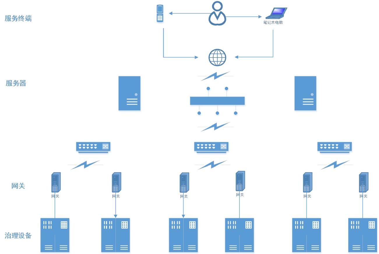 電能質量分析與治理系統平臺主要由電能質量治理設備、物理網關、服務器及服務終端四部分組成,其中電能質量治理設備作為基礎實現對數據采集與電能質量補償等具體服務動作,物理網關實現設備與服務器間的數據傳輸以及對設備進行策略功能分配,數據經由服務器*終以服務終端為媒介為用戶提供可視化展示。