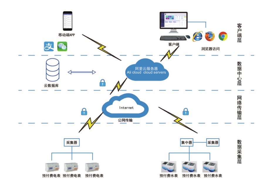 AcrelCloud-3200遠程預付費管控云平臺無縫集成商業、物業公司、集團企業等分散布置的DDSY/ADF系列電子式預付費申能表、閥控智能水表等,實現云端充值、圈存、預警、退費、電能消耗等功能,提供微信、支付寶、銀聯等可選的在線支付方式,大大方便了用戶為管理部門提供先交費后使用的管控機制,大大降低了管理部門的收費成本。