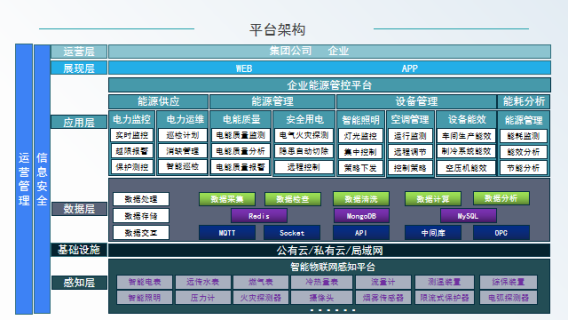 依據GB 17167-2006《用能單位能源計量器具配備和管理要求》,現場通過邊緣計算網關采集各類能源數據,將數據傳輸*平臺前置采集服務器,平臺搭建在客戶自己配置的服務器或云服務器上。平臺也可以將企業原有的PLC、DCS等數據進行采集,還可以對接企業內部的ERP、MES等信息化系統,結合生產數據進行產品單耗、萬元產值能耗等數據分析。搭建完成之后,企業用戶可以通過有權限的賬號登陸網頁以及手機APP查看整個廠區的能源數據。