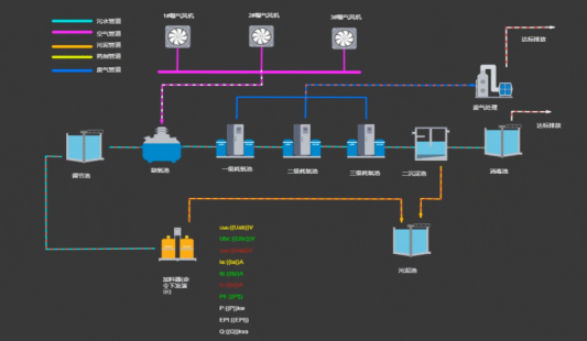 系統集成了工業組態編輯平臺,企業可根據自身行業特性和主要工藝設備,繪制自身的工藝流程圖,達到設備能效數據實時監控和預警的目的,例如空壓器系統、工藝冷卻水循環系統、制冷系統等。
