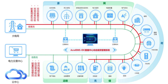 AcrelEMS-IDC數據中心綜合能效管理系統,根據數據中心能源流向、信息流向及電壓等*變化,可以將“源網荷儲運維”這幾個版塊納入系統進行集中采集、監測和控制,通過一個平臺、一個APP整體的對數據中心供配電環節進行集中監控、統一運維,保障數據中心的綠色低碳穩定可靠運行。