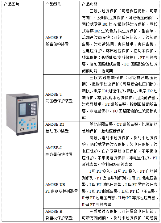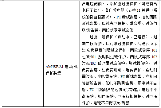 本次針對越南富士康22/10kV能源站機電配電工程中不同對象配置不同微機保護(hù)裝置,進(jìn)線柜配置AM5SE-F線路保護(hù)裝置,PT柜配置AM5SE-UB PT監(jiān)測及并列保護(hù)裝置,容量較大的變壓器柜配置AM5SE-T(變壓器保護(hù)裝置)+AM5SE-D2(差動保護(hù)裝置),其余變壓器柜配置AM5SE-T變壓器保護(hù)裝置,母聯(lián)柜配置AM5SE-B備自投保護(hù)裝置,電容出線柜配置AM5SE-C電容器保護(hù)裝置,電機出線柜配置AM5SE-M電動機保護(hù)裝置,這幾款微機保護(hù)裝置主要通過以下保護(hù)功能實現(xiàn)對高壓柜的設(shè)備運行情況實時監(jiān)視和保護(hù):