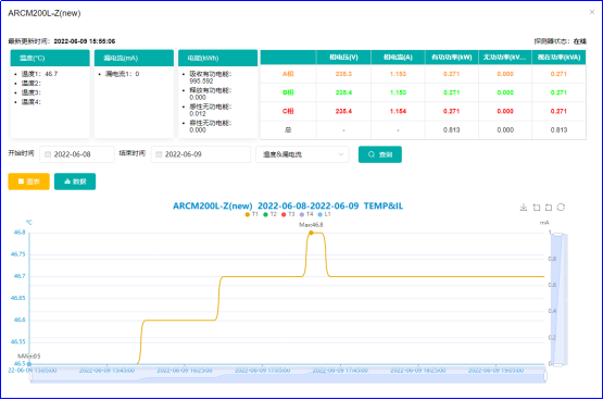 探測器數(shù)據(jù)頁面:該頁面可以查看探測器的實時數(shù)據(jù)情況,也可以通過運行曲線,了解探測的數(shù)據(jù)動向,以及趨勢等。