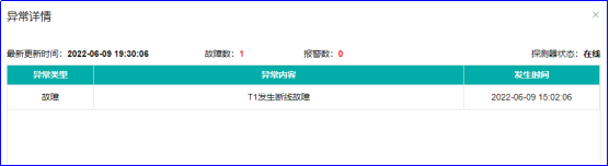 探測器異常詳情頁面:給頁面記錄的探測器的報警記錄,記錄探測器的報警時間、報警類型等。