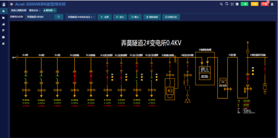 0.4kV回路保護和監測主要針對配電室0.4kV回路的保護、遙測、遙信和遙控功能,通過系統圖可以實時反饋0.4kV配電系統的運行狀況。