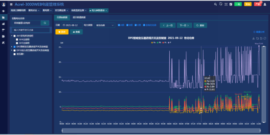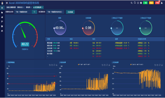 變壓器運行監控,展示變壓器運行過程中電壓,有功功率、無功功率、負荷等數據。