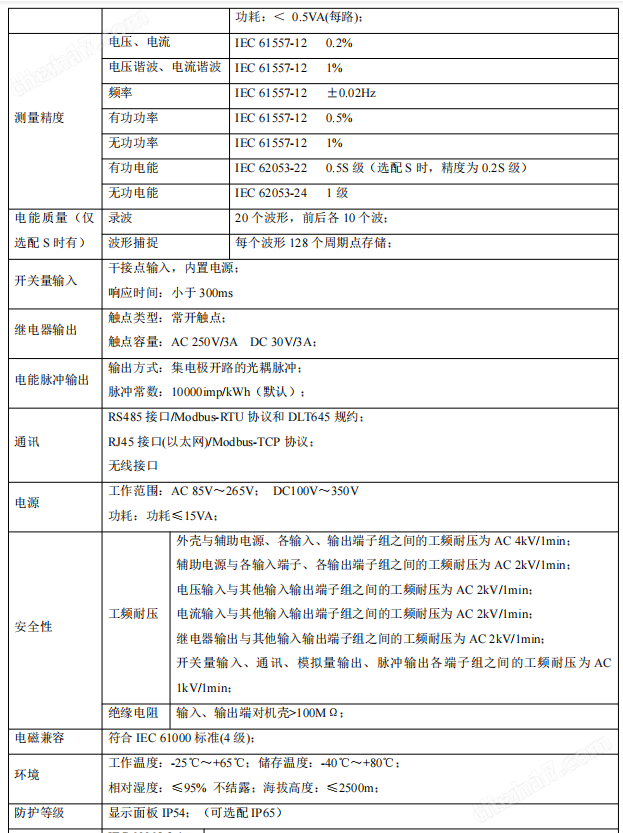 3 安科瑞網(wǎng)絡(luò)電力儀表/以太網(wǎng)通訊電表技術(shù)參數(shù)